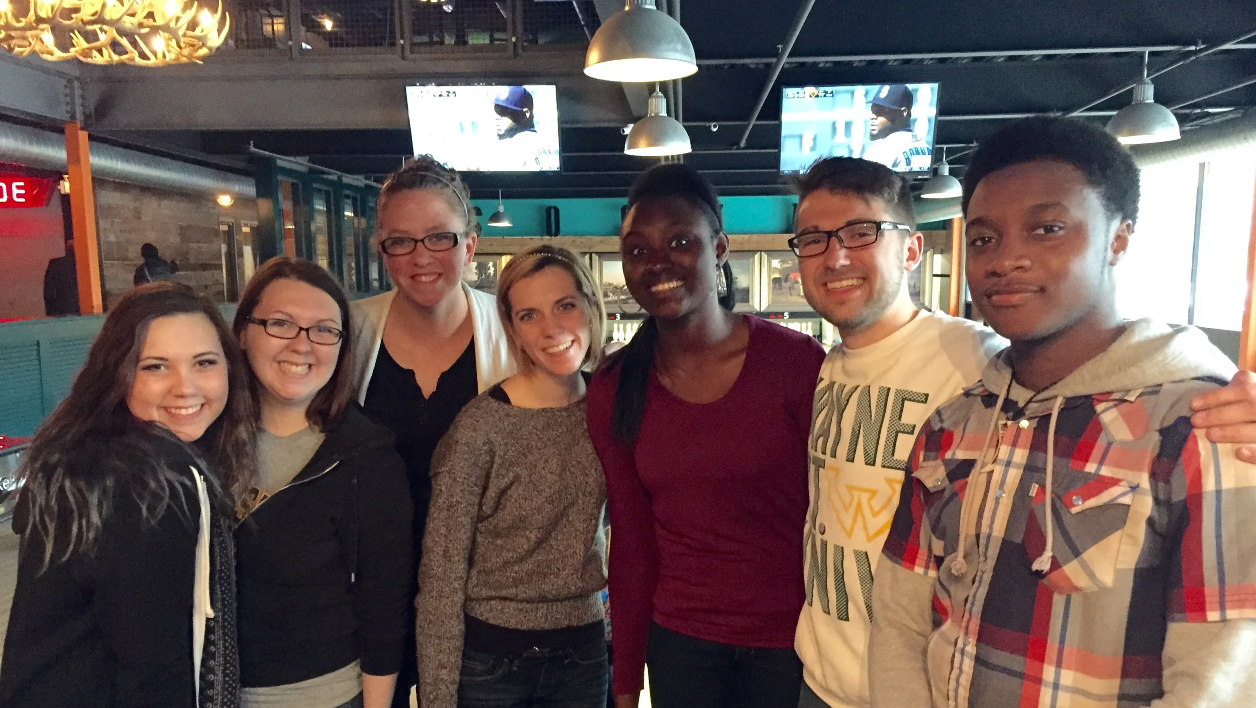 On Sunday nights, in partnership with Metropolitan UMC, Motor City Wesley will be gathering international students for fellowship, bible studies and more. This past Sunday we had a small kickoff event at Punch Bowl Social to welcome new student Emmanuella and to celebrate this new outreach ministry.